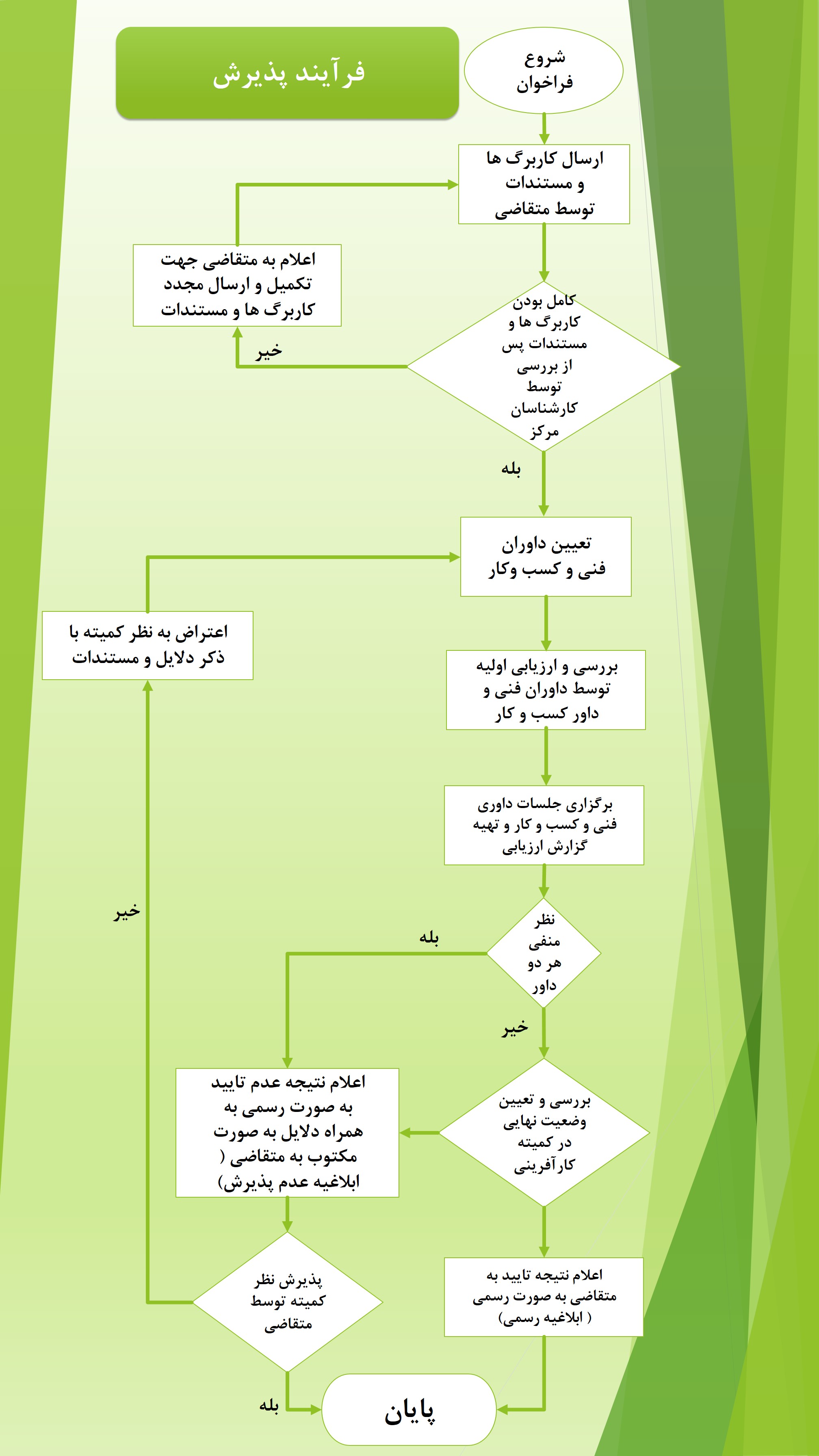 ۳ - در صورت تایید اولیه فرم درخواست پذیرش، مراتب در دستور کار "کمیته کارآفرینی" یا شورای داوری مرکز کارآفرینی؛ قرار می گیرد تا با دعوت از ایده پرداز یا مدیرعامل واحد نوآور بررسی لازم صورت پذیرد.
