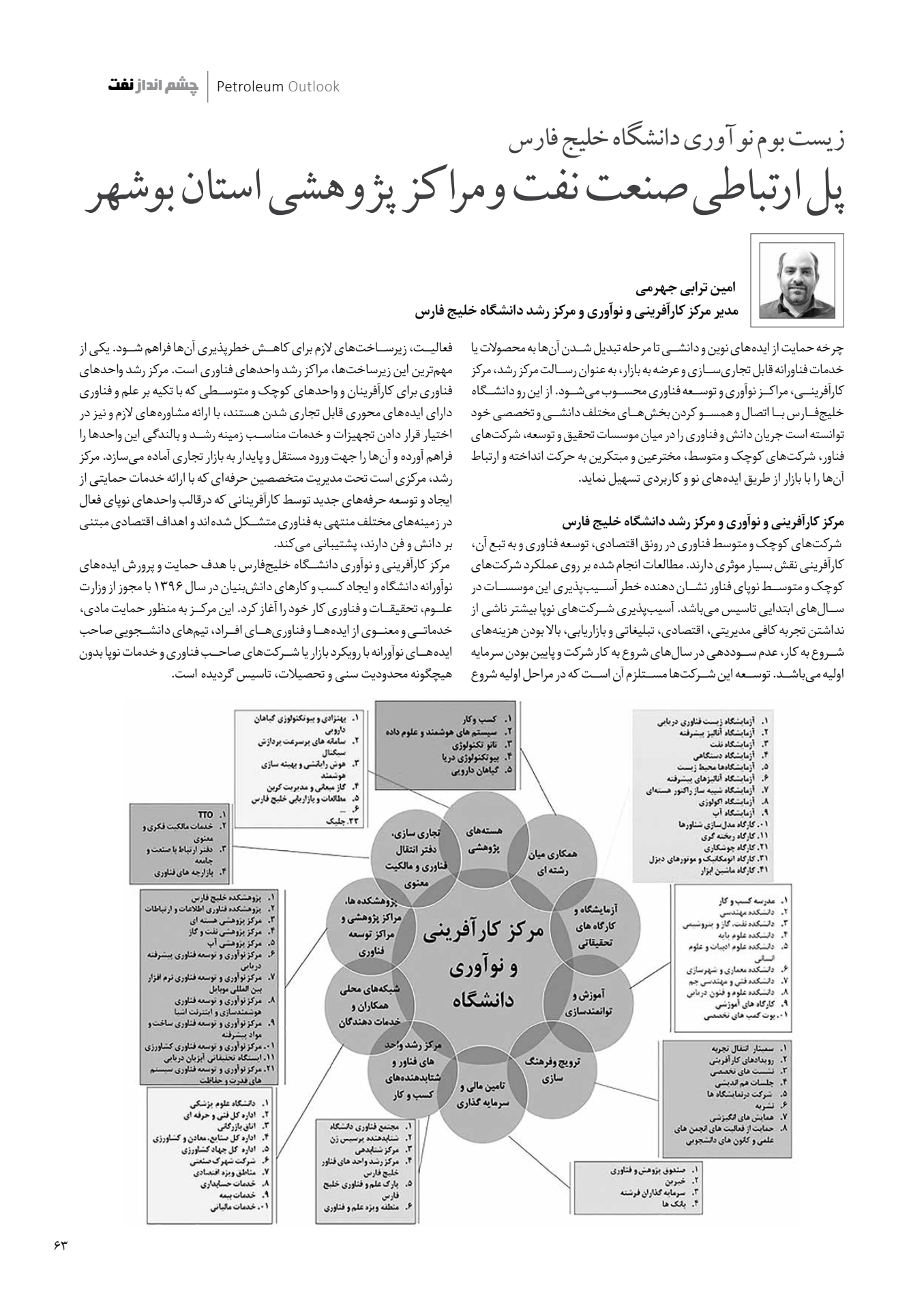 مرکز کارآفرینی و نوآوری در ماهنامه تخصصی نفت و انرژی "چشم انداز نفت":