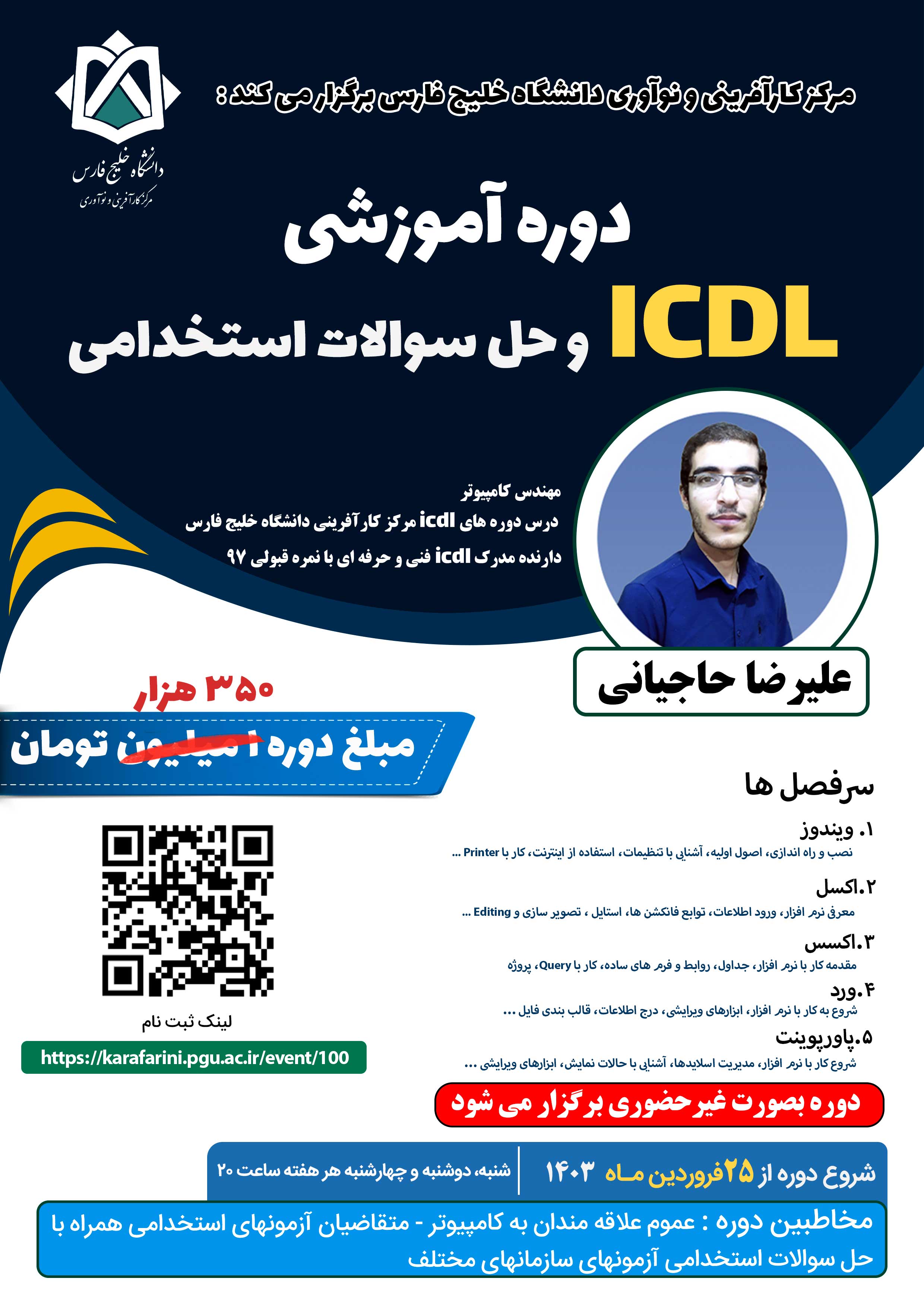 ثبت نام دوره آموزشی ICDL و حل سوالات استخدامی مدرس: علیرضا حاجیانی