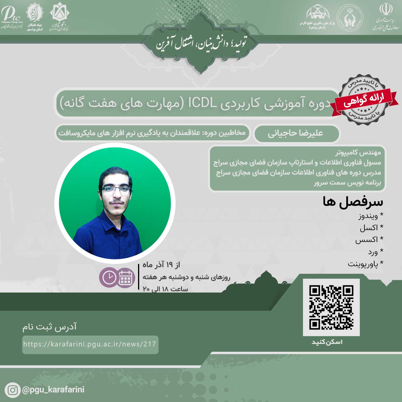 مدرس دورهای icdl و برنامه نویسی سازمان فضای مجازی سراج