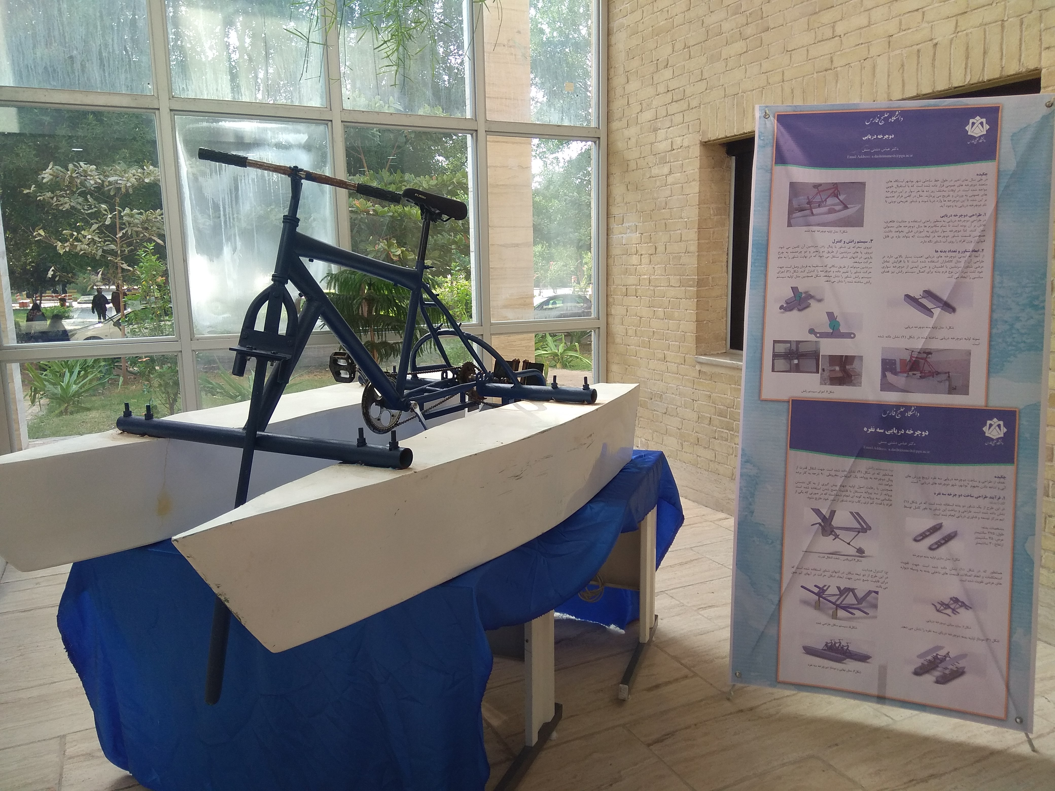 دوچرخه دریایی، وسیله ای تفریحی در زمینه گردشگری و ورزش دریایی است. از این وسیله میتوان در سواحل جنوب و شمال کشور، دریاچه ها و پارک های آبی استفاده کرد. نمونه اولیه این محصول در ساحل دانشگاه خلیج فارس تست شد و نمونه دوم این محصول که نوآورانه تر از نمونه اولی می باشد، فاصله ما را با کمپانی های برتر دنیا کاهش داده است. قیمت به صرفه تر، زیبایی محصول، سیستم رانش و انتقال قدرت متکی بر دانش فنی، سیستم شناوری و پایداری برخاسته از مطالعات مهندسی دریا، قابلیت باز و بست آسان تر، وزن کمتر و سایر خلاقیت های کاربردی محور از تفاوت های نمونه دوم این محصول با نمونه اول می باشد.